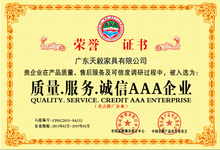 ??公司已經(jīng)國(guó)家質(zhì)量工商單位審核體系認(rèn)證。我公司系廣州家具協(xié)會(huì)單位,在生產(chǎn)內(nèi)部各個(gè)環(huán)節(jié)設(shè)立了檢驗(yàn)關(guān)口,從原材料的進(jìn)庫(kù)到產(chǎn)品的出倉(cāng),實(shí)行嚴(yán)格的檢驗(yàn),以達(dá)到質(zhì)量最優(yōu)...